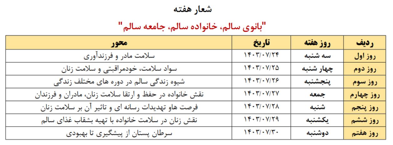 به این منظور محورهای این هفته در سال جاری به شرح ذیل اعلام شده است.