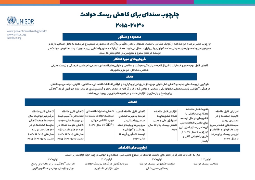 که بر کاهش اساسی مرگ و میر، تلفات انسانی و خسارات اقتصادی ناشی از بلایا تأکید دارد،برداریم.