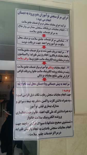 در ادامه مسئولین حاضراز قسمت های مختلف پایگاه سنجش پیوند آموزش و پرورش بازدید و نحوه اجرای سنجش را بررسی نمودند،سپس در ادامه فرآیند سنجش که انجام معاینات غربالگری و پزشکی نوآموز در مراکز خدمات جامع سلامت می باشد،مسئولین از مرکز خدمات جامع سلامت نجفی از مراکز تحت پوشش مرکز بهداشت شماره یک نیز باردید و کلیه مراحل انجام سنجش را نیز در این مرکز مورد بررسی قرار دادند.