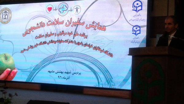 سفیر سلامت دانشجو می باشد.از ابتدای شروع این طرح واحد آموزش سلامت مرکز بهداشت شماره یک شهرستان مشهد با همکاری دانشگاههای تحت پوشش