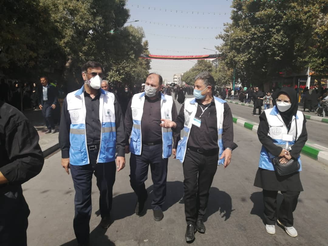 دکتر کیانی ریاست محترم دانشگاه علوم پزشکی مشهد در روز اربعین جهت بازدید و نحوه عملکرد کارکنان بهداشتی به همراه دکتر حسینی معاون محترم بهداشتی مرکز بهداشت خراسان رضوی در خیابانهای منتهی به حرم مظهر رضوی حضور یافتند.
