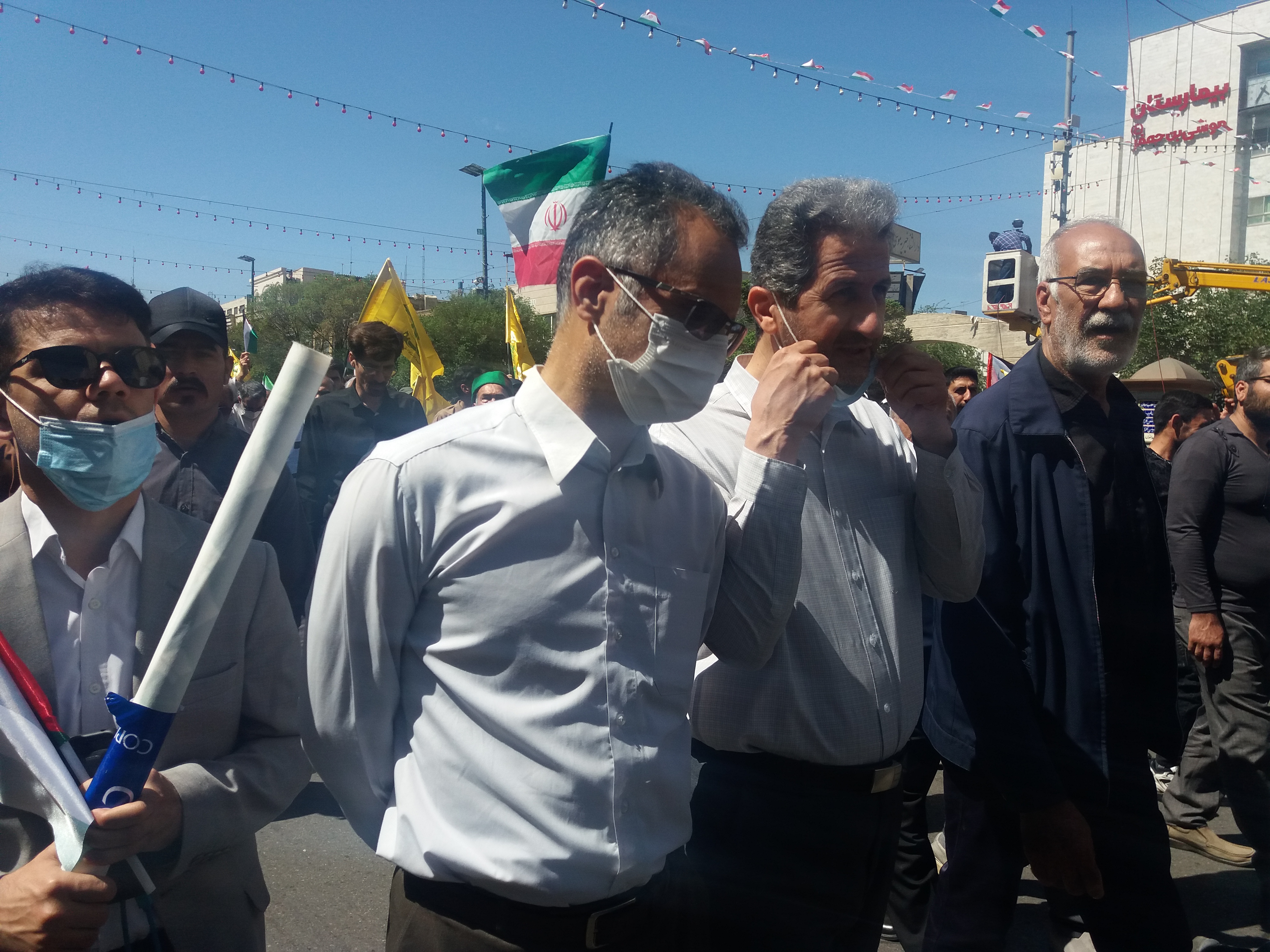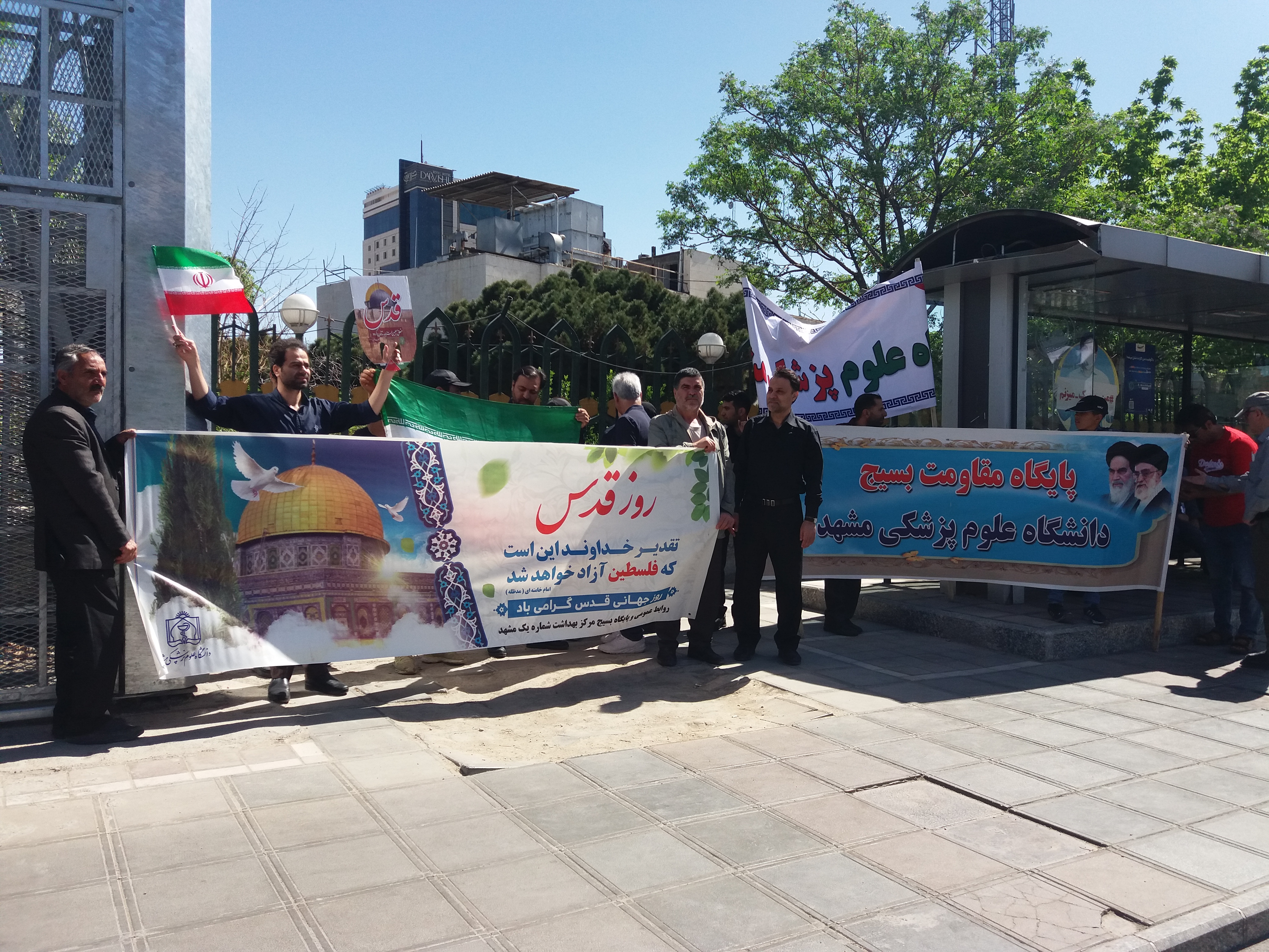 رئیس مرکز بهداشت شماره یک مشهد -آقای دکتر عرب نژاد- و معاون فنی ایشان -خانم دکتر سردار- و جمعی از همکاران این مرکز در آخرین جمعه از ماه مبارک رمضان در راهپیمایی روز قدس به جمع پرشور دانشگاهیان پیوستند.