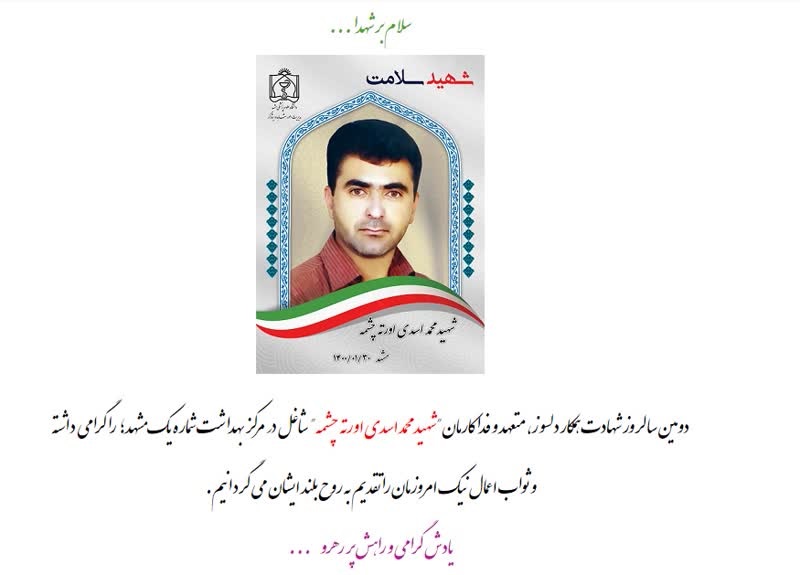 مراسم گرامیداشت دومین سالگرد شهادت شهید مدافع سلامت "محمد اسدی" در منزل شهید توسط خانواده گرانقدرش با مدیریت توسط فرزند برومندش "مجید اسدی" در شامگاه و اقطاری بیست و نهم فروردین با حضور جمعی از دوستان هیئتی ایشان و دو نفر نمایندگان مرکز بهداشت شماره یک مشهد برگزار شد.