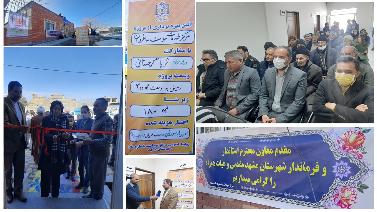 آئین افتتاح رسمی مرکز خدمات سلامت روستایی ساغروان با حضور فرماندار مشهد و بخشدار مرکزی و هیئت همراه، نمایندگان مرکز بهداشت استان , مسئولین واحدهای ستادی مرکز بهداشت شماره یک مشهد و نیز شورای اسلامی و دهیار و جمعی از مردم شریف روستای ساغروان برگزار شد.