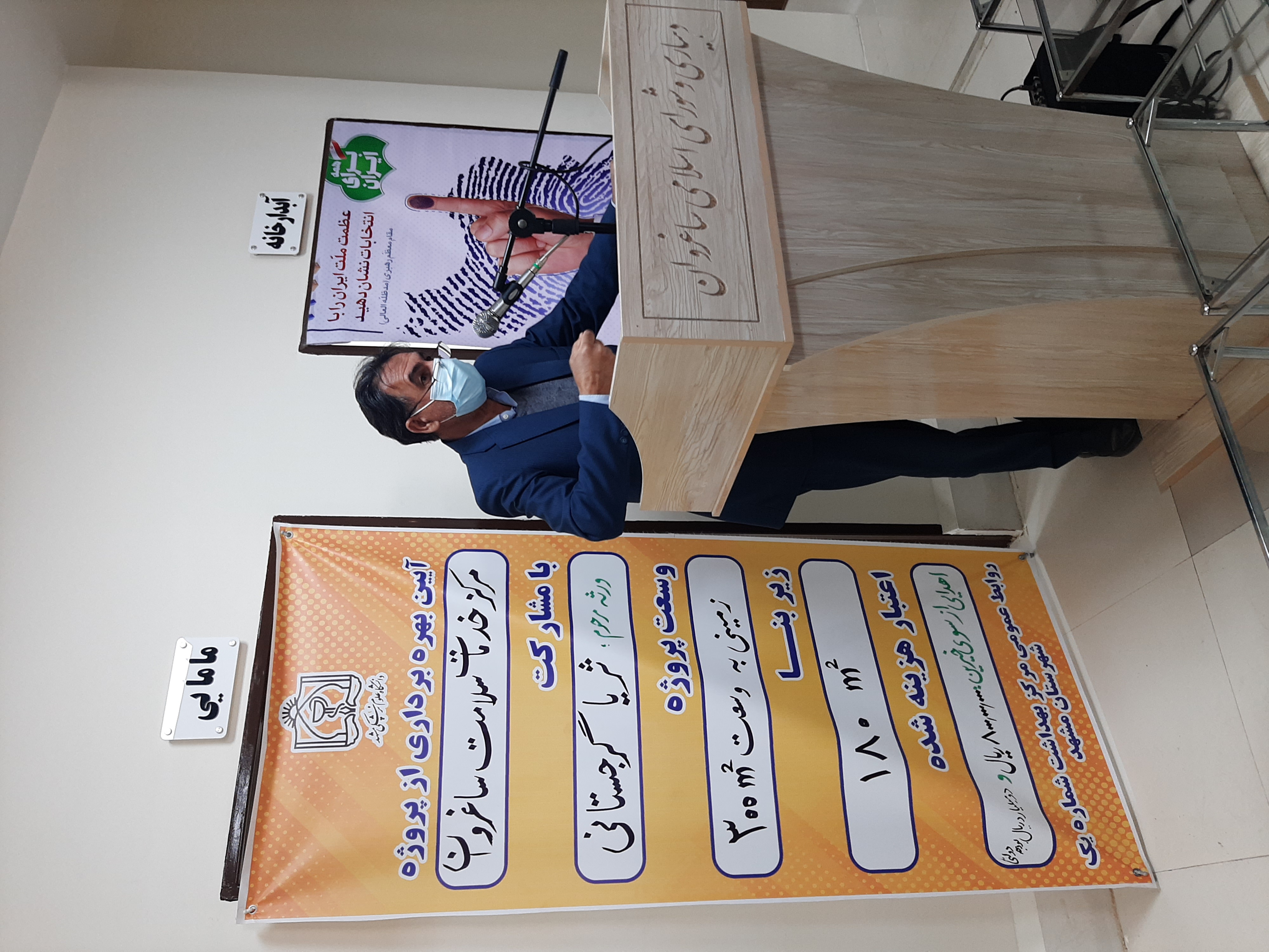 آقای دکتر عرب نژاد -رئیس مرکز بهداشت شماره یک مشهد- در سخنانش ضمن اشاره به اهم فعالیتها و خدمات ارائه شده در این مرکز، از زحمات و همراهی خیرین محترم؛ ورثه مرحومه ثریا گرجستانی، دهیار و اعضای شورای اسلامی روستا در فراهم کردن این بستر قدردانی نمودند. ایشان با اشاره به پروژه های فراوانی که در حوزه شهری و روستایی توسط خیرین محترم اجرایی شده و به بهره برداری رسیده است، بیان کردند که حضور و همراهی مردم و خیرین نقطه قوت پیشرفت در ارائه خدمات بهداشتی و ارتقاء سلامتی آحاد جامعه است.