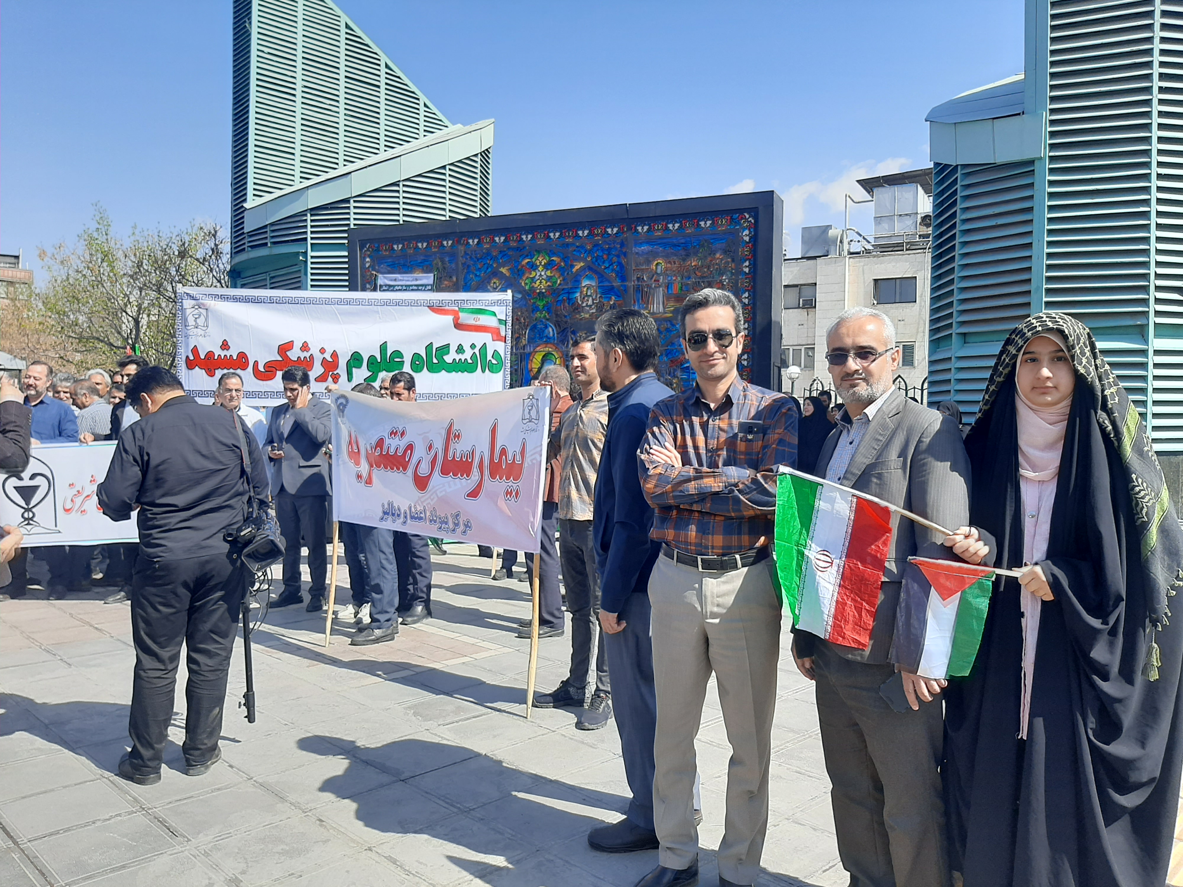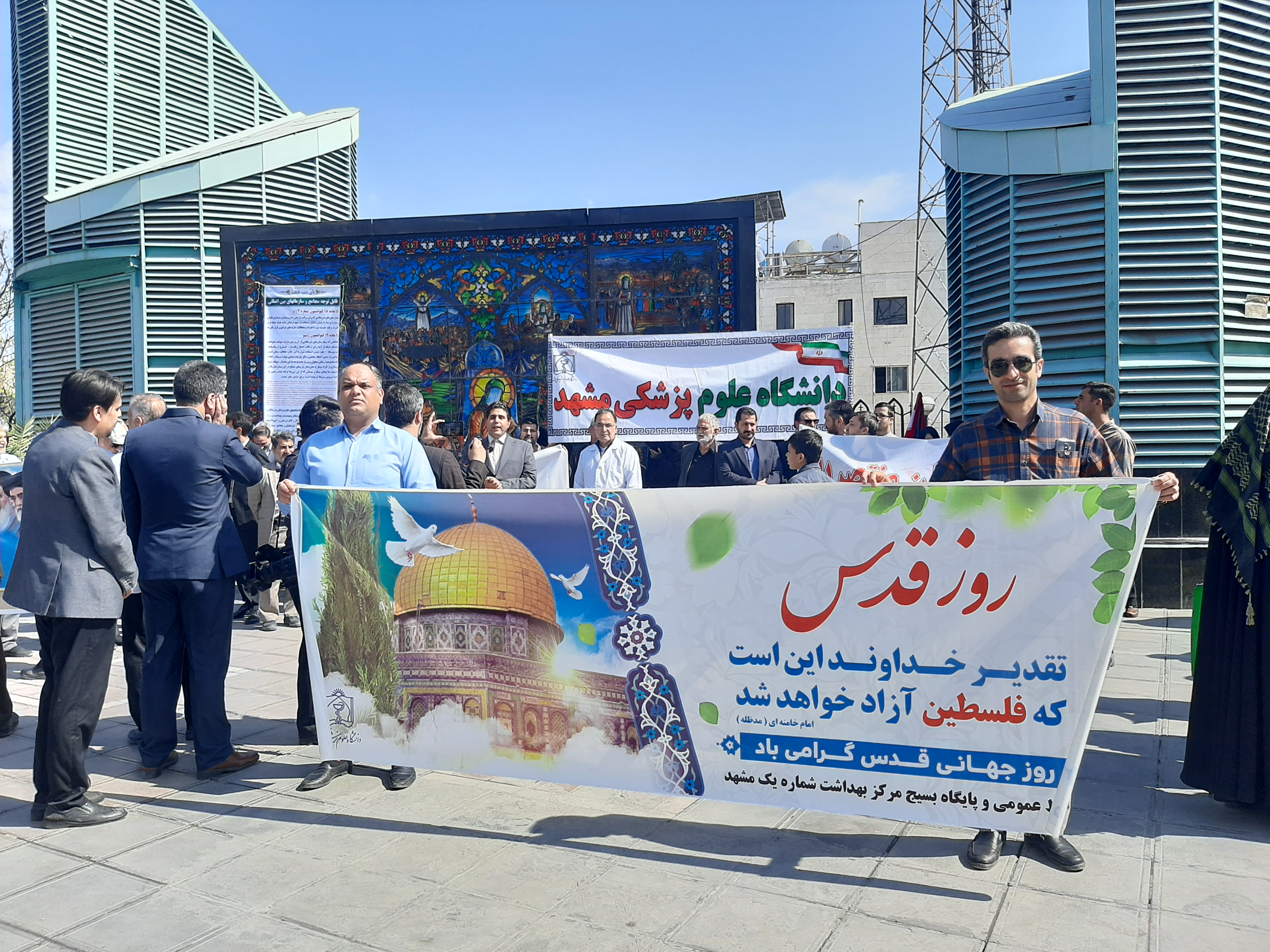 حضور فعال و همراهی نمایندگان مرکز بهداشت شماره یک مشهد در کنار سایر واحدهای زیرمجموعه دانشگاه، چشم نواز و نشان از آگاهی و بصیرت و حضور در صحنه دفاع از مردم مظلوم فلسطین و احقاق حقوق انسانی است.